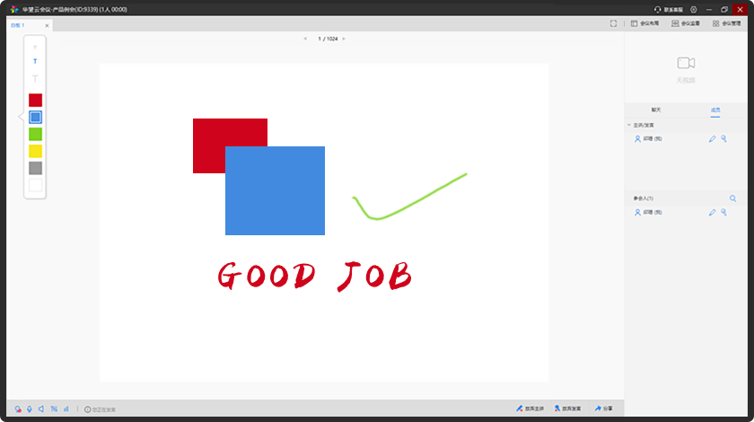 具備電子白板功能,支持畫筆、文本編輯、圖形等多種工具,支持office辦公文檔,包括word、excel、PPT、pdf,還有影音視頻文件、應用程序共享。